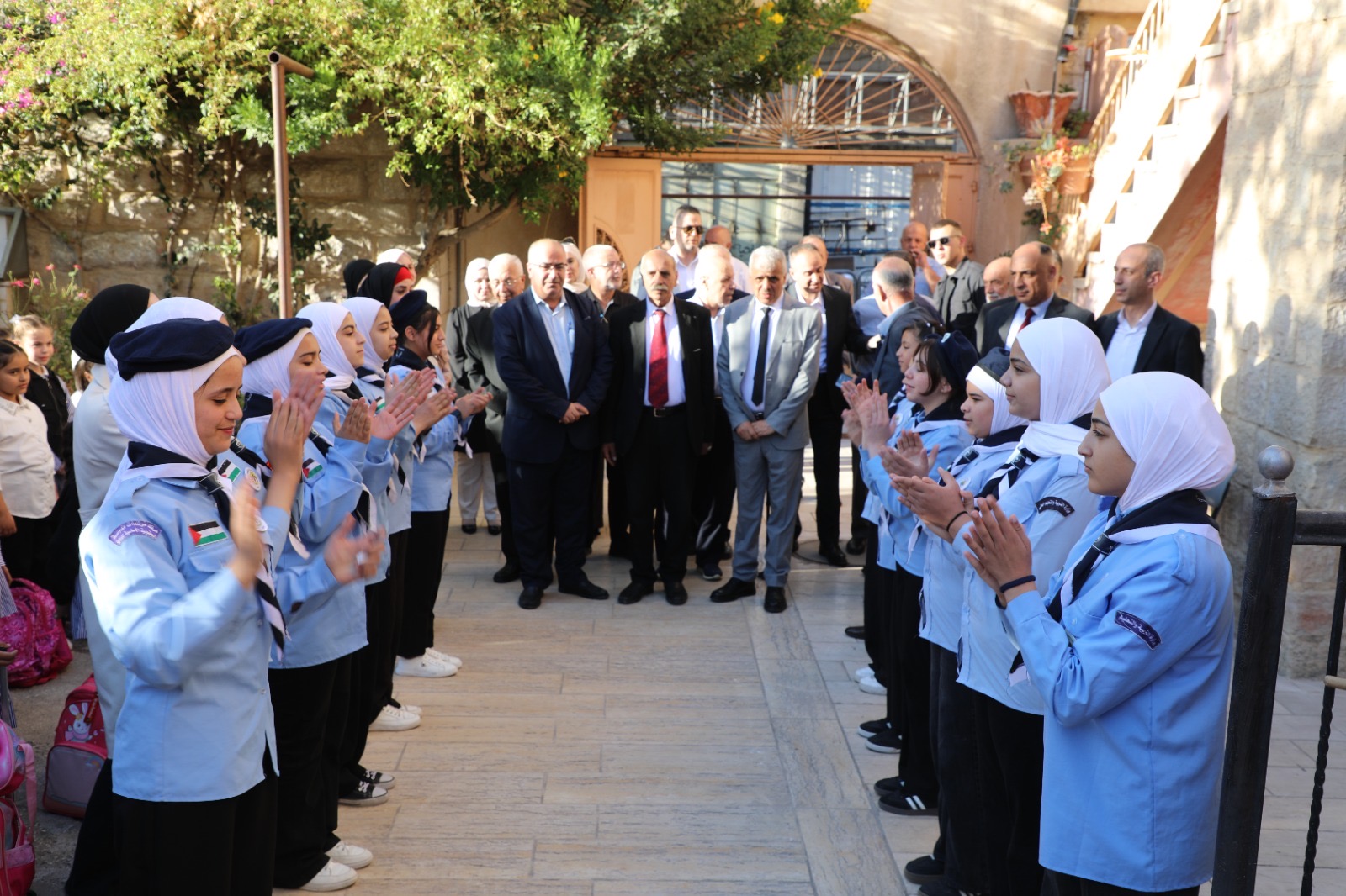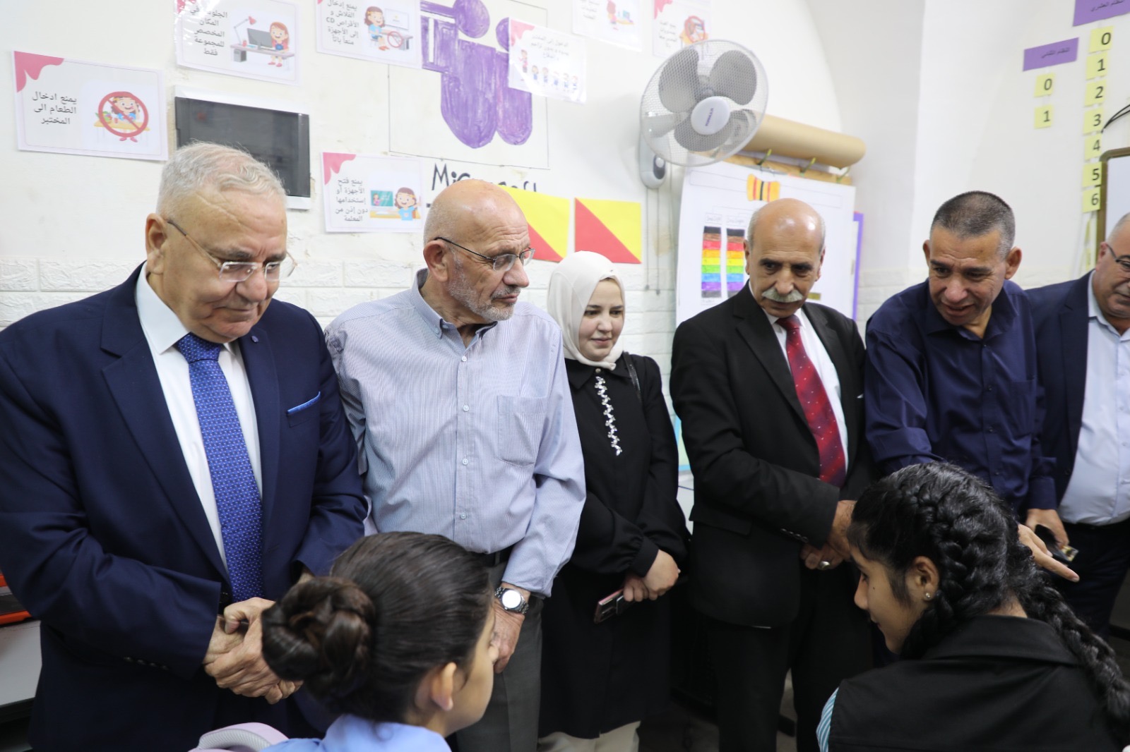 وفي سياق ذي صلة؛ استهل برهم جولته بزيارة مدرسة اليعقوبية الأساسية للبنات؛ إذ شارك الطالبات فعاليات، الطابور الصباحي كما تفقد سير العملية التعليمية في المدرسة، كما تم توزيع حقائب مدرسية على الطالبات؛ بدعم من لجنة زكاة الخليل.