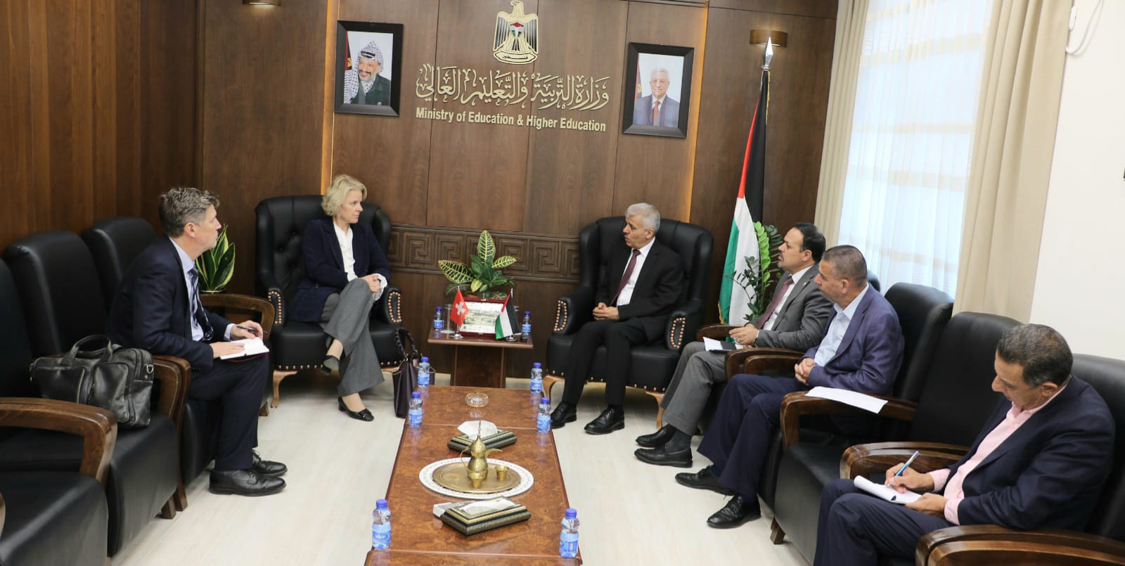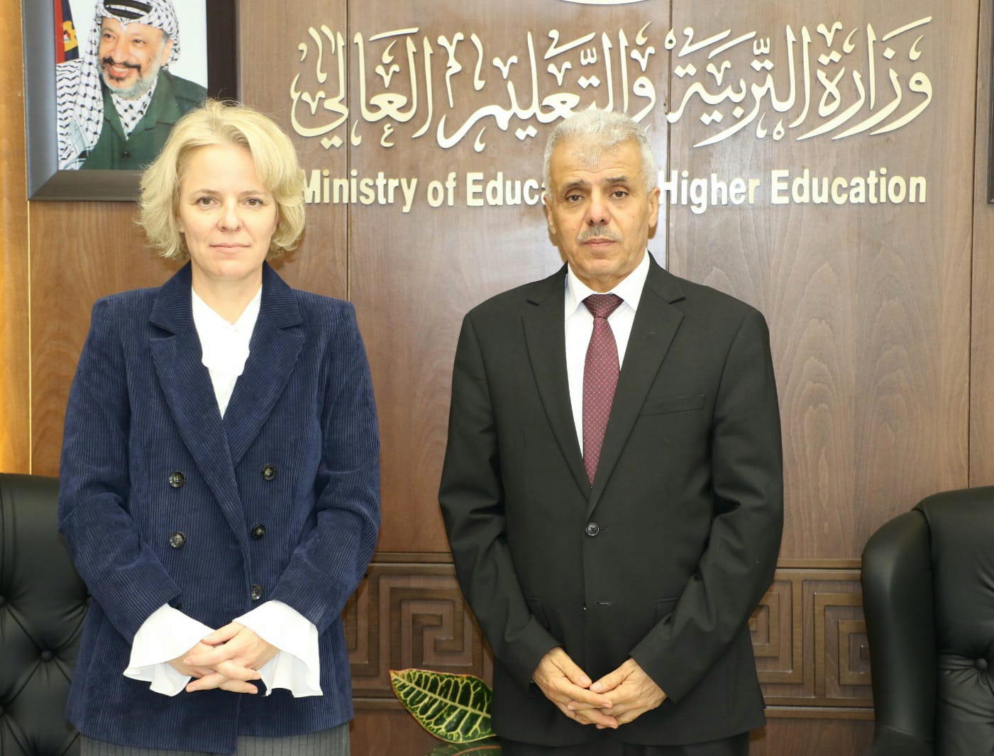 الإعلام التربوي 15/11/2025 استقبل وزير التربية والتعليم العالي أ.د. أمجد برهم، سفيرة سويسرا لدى فلسطين آن ليز كاتين هينين، حيث جرى بحث آفاق التعاون المشترك بين الجانبين لدعم قطاع التعليم في فلسطين. وتناول اللقاء؛ سبل توسيع نطاق المنح الدراسية الجامعية المقدمة للطلبة الفلسطينيين، وتعزيز الشراكة في تنفيذ برامج نوعية تواكب التطورات التربوية؛ خاصة في ظل إطلاق الوزارة لخطة "التعليم من أجل التنمية" وما تتضمنه من توجهات مبتكرة كمصادر التعلم المفتوحة التي تطبق في أكثر من 60 مدرسة حكومية. واستعرض الوزير برهم حجم التحديات التي يواجهها قطاع التعليم، خاصة في قطاع غزة جراء العدوان الذي أدى إلى تدمير ممنهج للمؤسسات التعليمية من مدارس وجامعات ورياض أطفال ومراكز تعليمية، مؤكداً أن الوزارة تقود جهوداً حثيثة لإعادة الإعمار التربوي، وتعزيز صمود الطلبة والمعلمين والأكاديميين، وما قادته من جهود على صعيد عقد امتحانات الثانوية العامة رغم الظروف الصعبة، وإطلاق المدارس الافتراضية وغيرها من الخطوات الرامية إلى تعافي التعليم وإسعافه. بدورها، عبّرت السفيرة هينين عن تقديرها للجهود التي تبذلها الوزارة، مؤكدةً اهتمام بلادها بدعم التعليم في فلسطين، لاسيما في الظروف الاستثنائية الراهنة، واستعدادها لتعزيز أوجه التعاون المستقبلي.