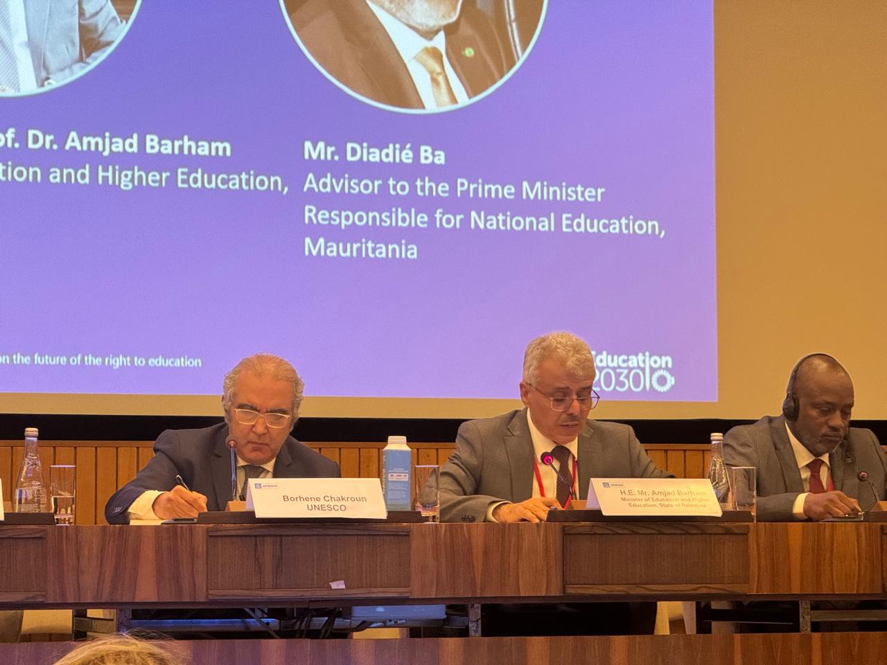 شارك وزير التربية والتعليم العالي أ.د. أمجد برهم، اليوم، في أعمال الندوة الدولية التي نظمتها منظمة اليونسكو في باريس، حول مستقبل الحق في التعليم، بمشاركة وزراء ومسؤولين دوليين وخبراء تربويين من مختلف أنحاء العالم.