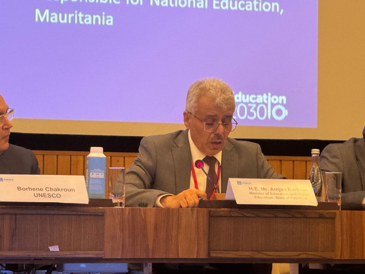 وقدّم برهم مداخلتين رئيسيتين؛ الأولى خلال الجلسة الافتتاحية، ركز فيها على إعمال الحق في التعليم على المستوى الوطني، مؤكدًا أن التعليم في فلسطين يُمثل أولوية وطنية وحقًا أصيلًا رغم ما يواجهه من تحديات.