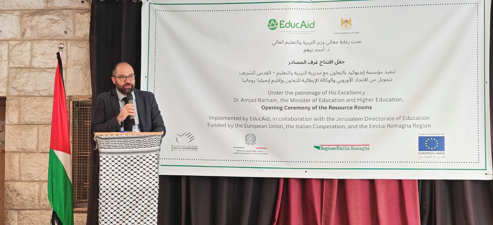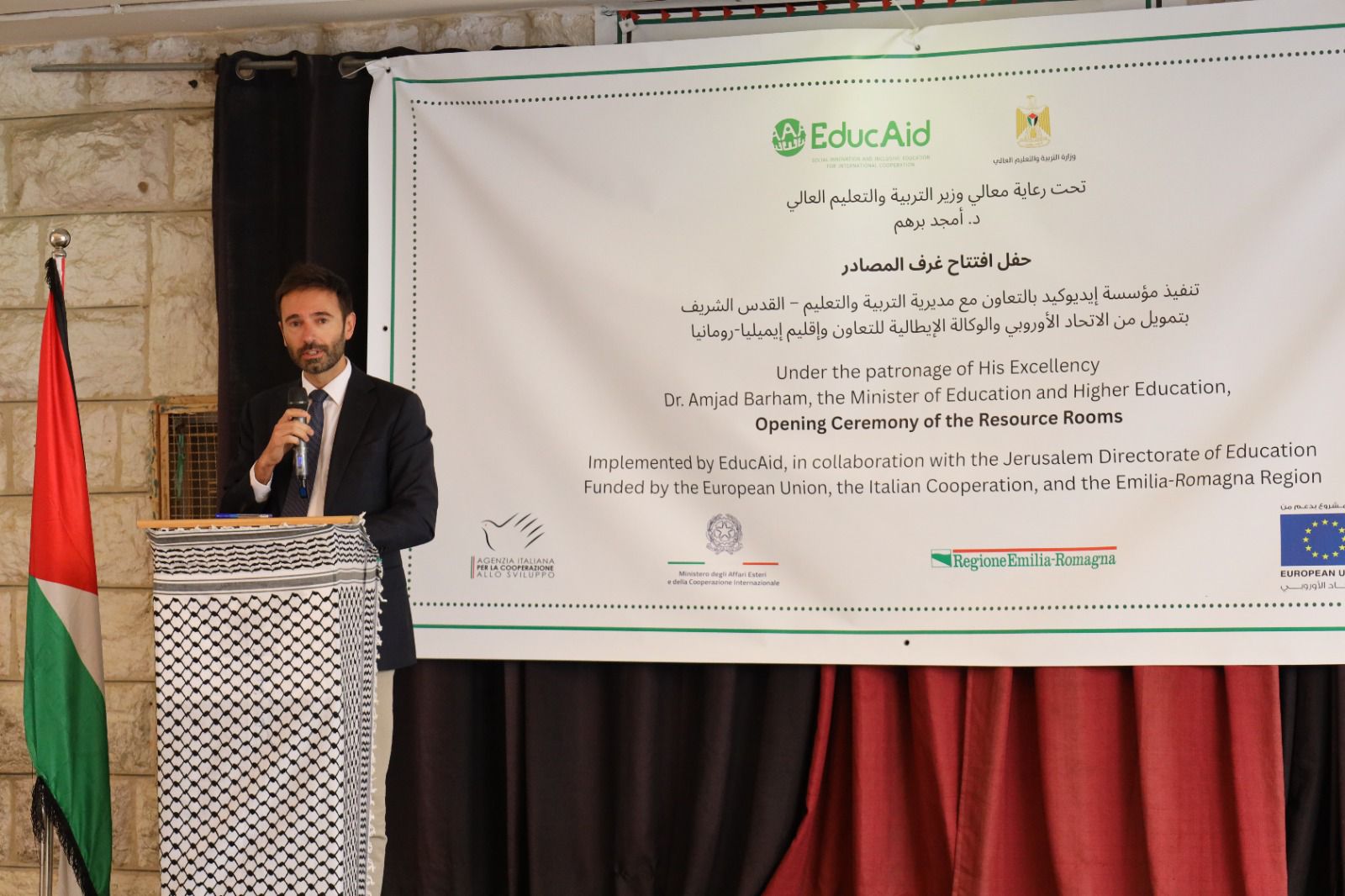 افتتحت وزارة التربية والتعليم العالي في تربية القدس بالشراكة مع مؤسسة الإديوكيد الإيطالية، 21 غرفة مصادر جديدة، وذلك ضمن مشروع "تعزيز وصمود التعليم في القدس" المنفّذ من قبل مؤسسة EducAid، بدعم من الاتحاد الأوروبي، والوكالة الإيطالية للتعاون الإنمائي (AICS)، وإقليم إيميليا رومانيا، حيث تم تنظيم الفعالية المركزية في قلب مدرسة زهرة المدائن.
