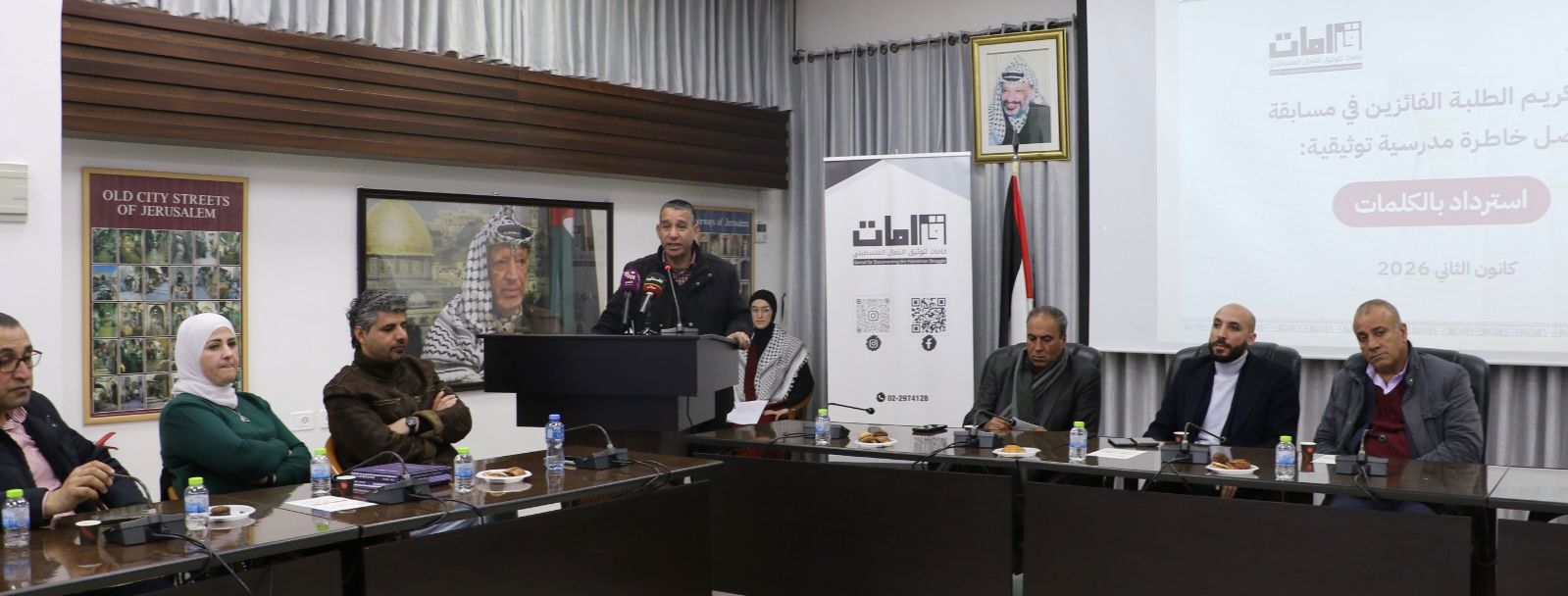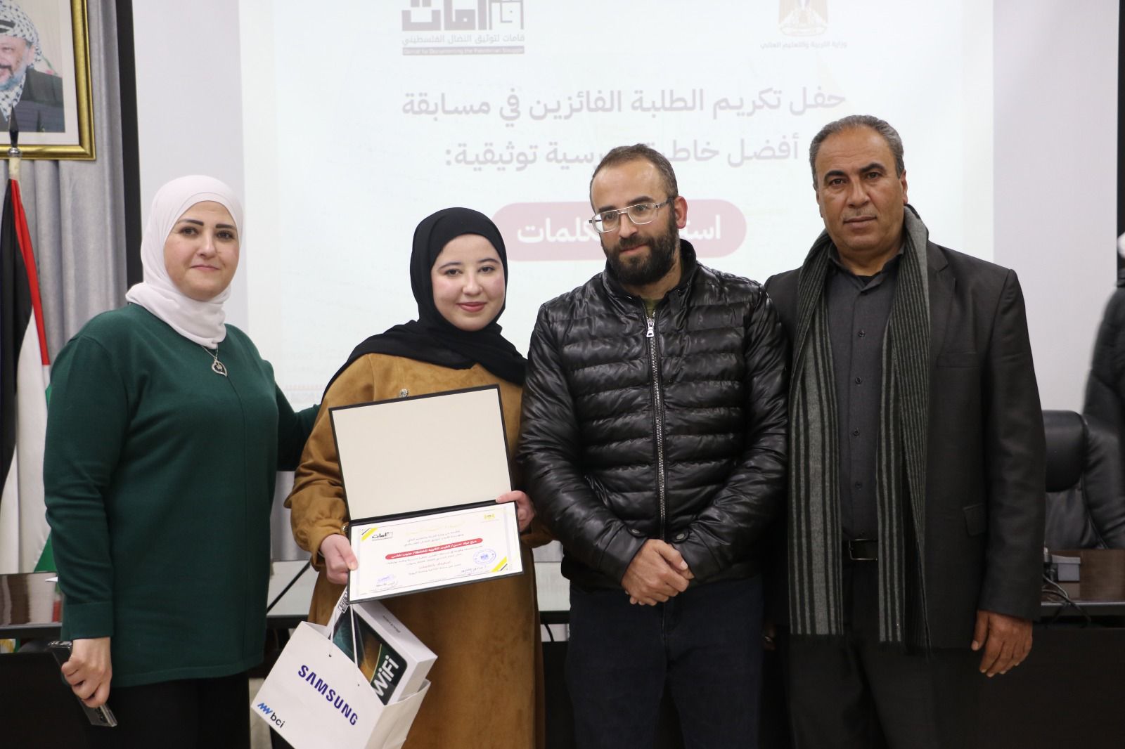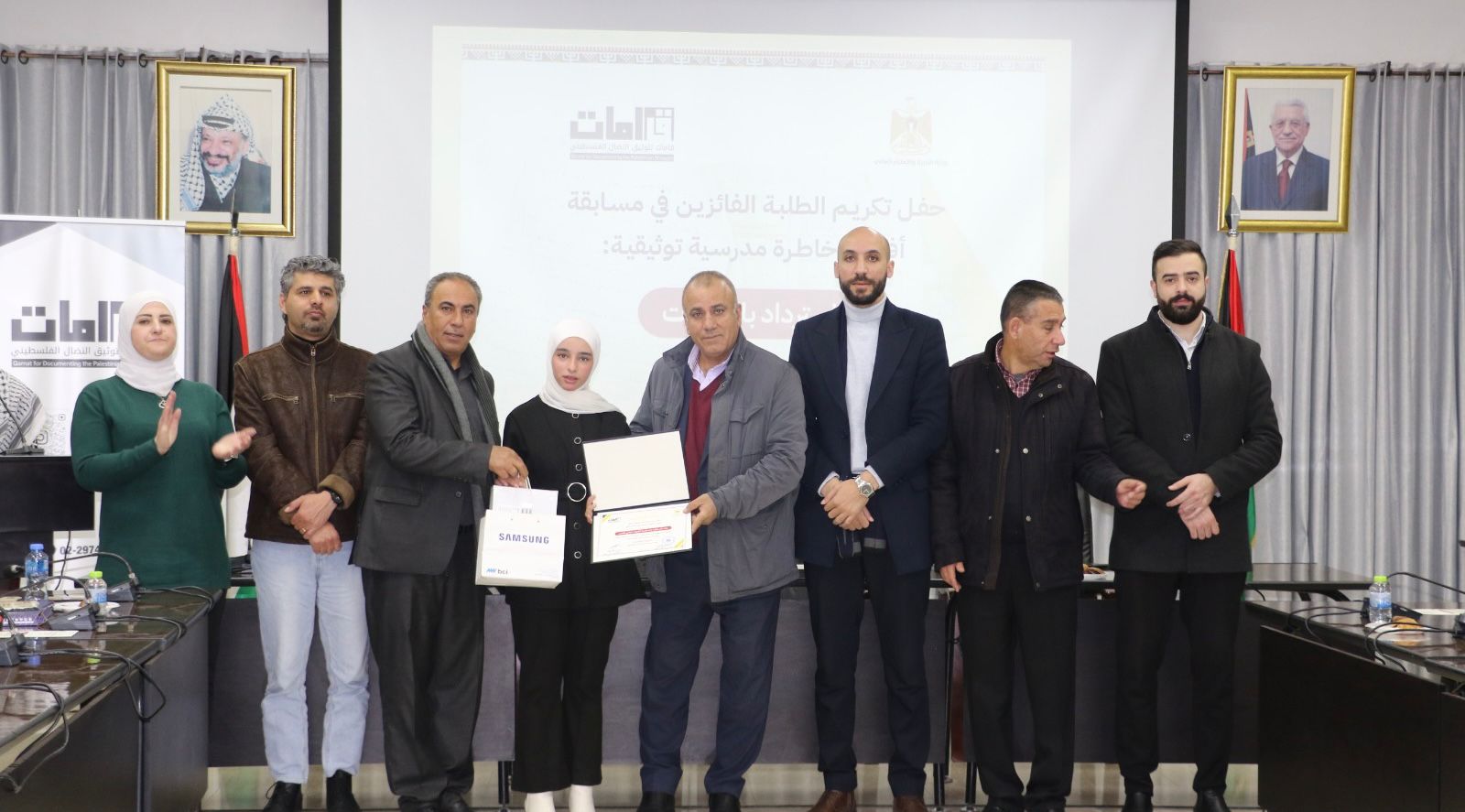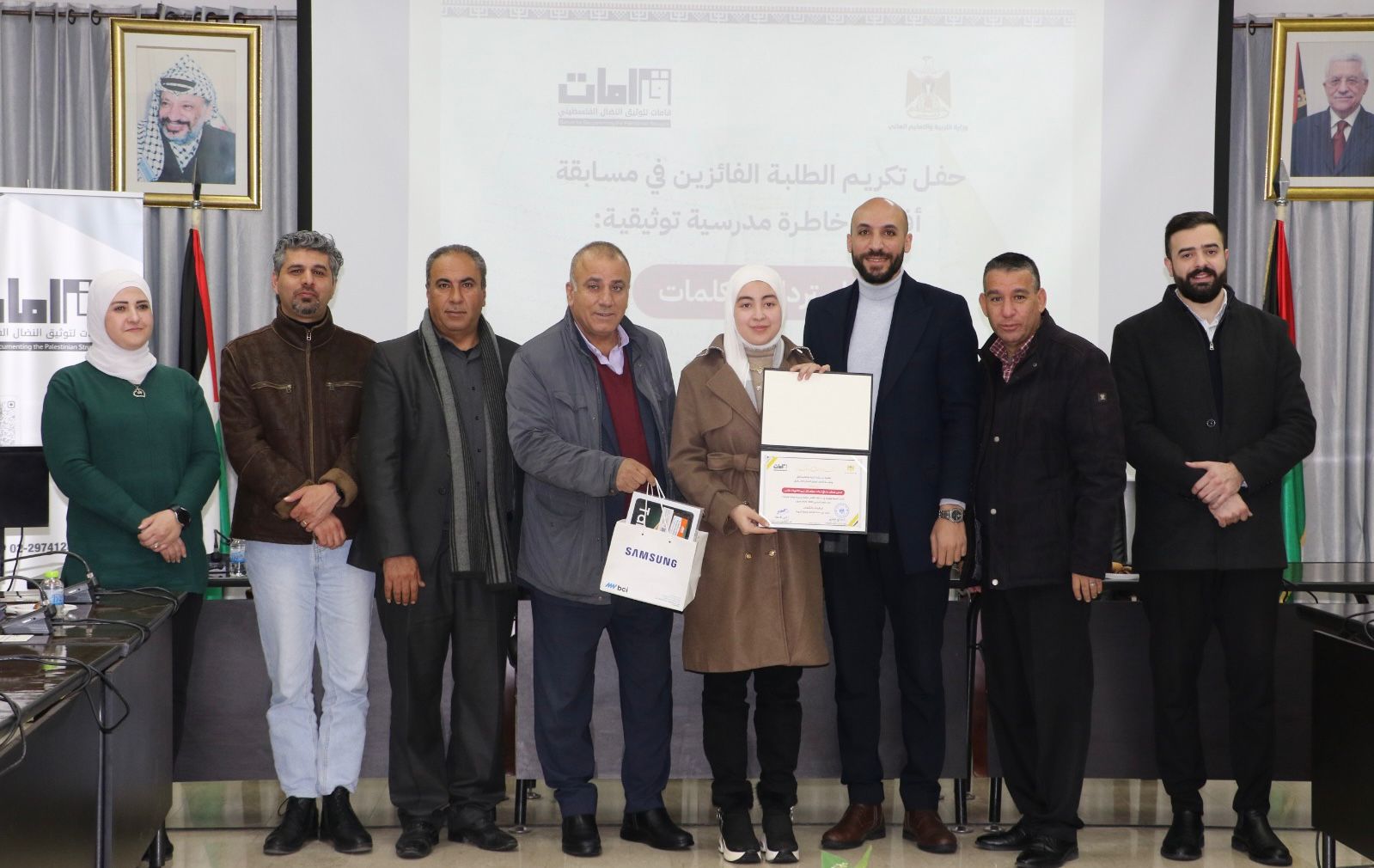 كرّمت وزارة التربية والتعليم العالي، ومؤسسة قامات لتوثيق النضال الفلسطيني، اليوم الأربعاء، الطلبة الفائزين في مسابقة أفضل خاطرة مدرسية وطنية توثيقية حملت عنوان: "استرداد بالكلمات"، وجاءت استلهاماً من فيلم قامات الوثائقي "استرداد مؤجل" للمخرج الأسير عبد الله معطان، الذي يوثق معاناة ذوي الشهداء المحتجزة جثامينهم في ثلاجات الاحتلال.