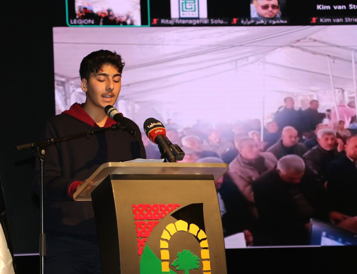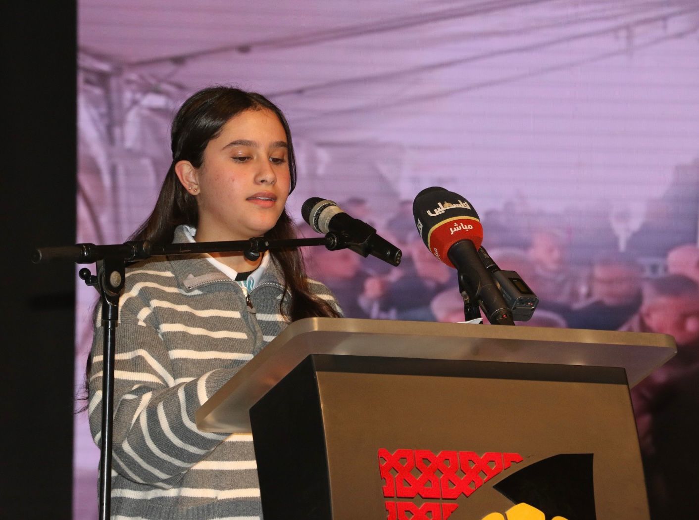 وألقى الطالبان؛ ماسة شنان ومينا بحبح من مدارس رام الله والبيرة كلمة مؤثرة باسم أطفال وطلبة فلسطين، حملت نداءً عاجلاً للعالم بضرورة حماية حقهم في التعليم والدفاع عن مدارسهم التي دمرها الاحتلال في غزة ويحاصرها ويقتحمها في الضفة، وطالبا بمحاسبة الاحتلال على جرائمه المتمثلة في توجيه فوهات الدبابات والرصاص نحو رؤوس الطلبة وأسوار وساحات المدارس.