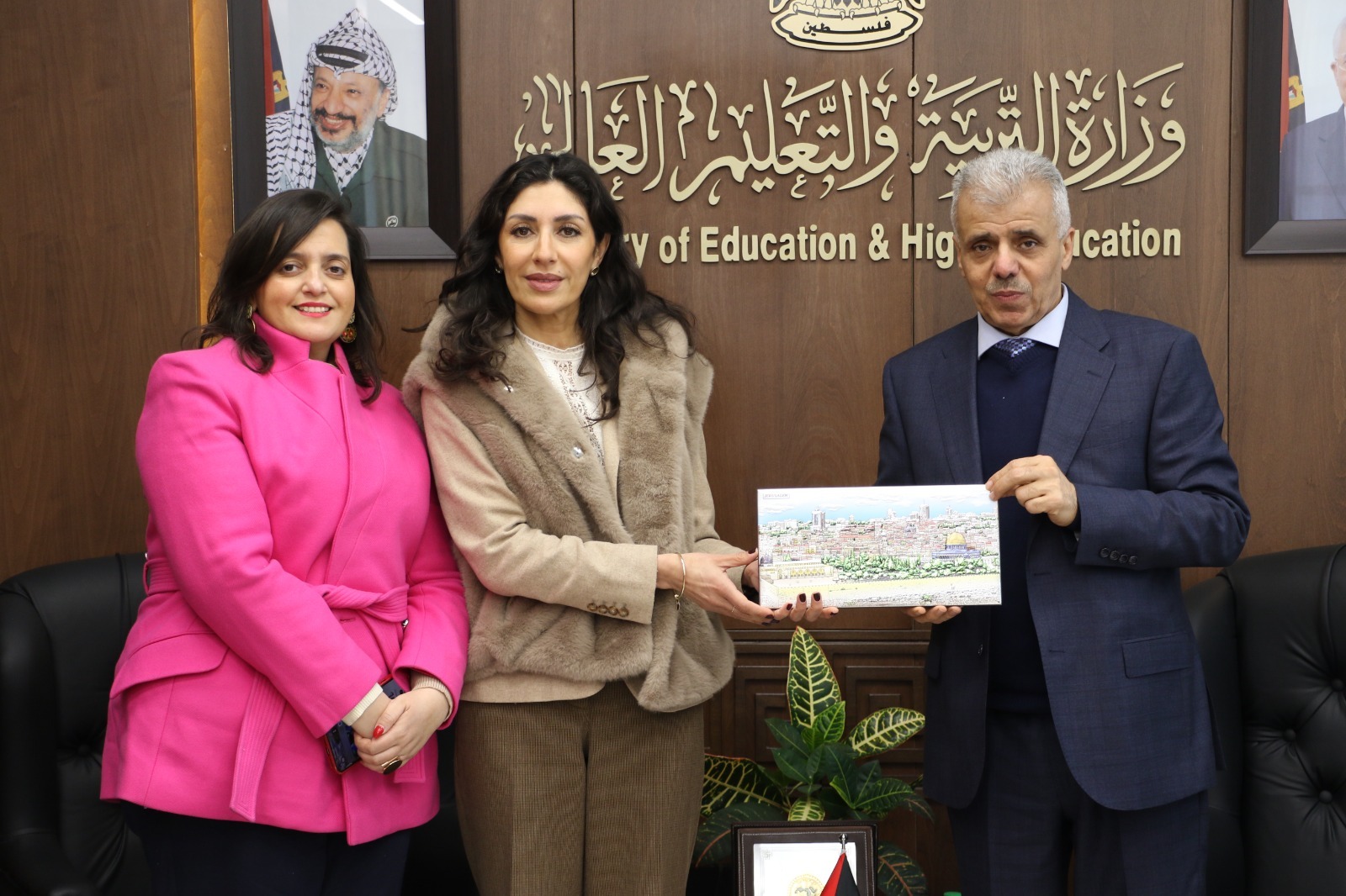كرم وزير التربية والتعليم العالي أ.د. أمجد برهم مديرة مكتب منظمة اليونسكو في فلسطين ليلي نايستاني- هايلو، وذلك تقديراً لجهودها وعطاءها خلال فترة توليها مسؤولياتها في فلسطين، وبمناسبة انتهاء مهامها الرسمية.