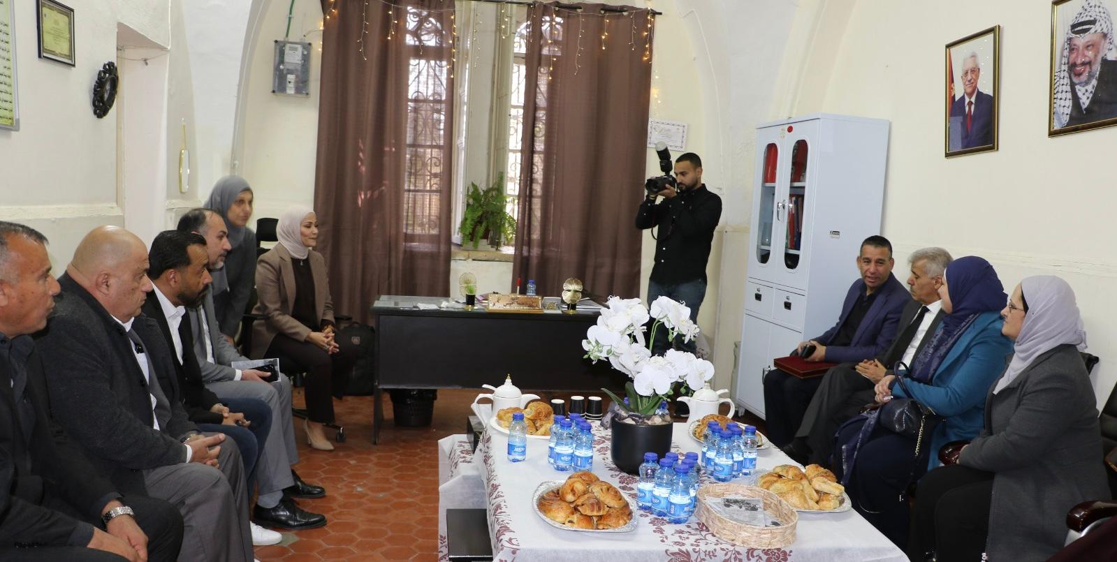 كما زار الوزير بلدية بيت جالا، حيث التقى رئيس البلدية وأعضاء المجلس البلدي، وجرى خلال اللقاء الذي تم بحضور مدير عام تربية بيت لحم لميس الزير، والوكيل المساعد للشؤون الطلابية صادق الخضور، ومدير عام الأبنية م. وسام نخلة؛ التباحث في عدد من القضايا ذات الاهتمام المشترك، من أبرزها توفير قطع أراضٍ صالحة لبناء مدارس حكومية، إضافة إلى مناقشة موضوع مجاز مستودع الكتب التابع لمديرية التربية والتعليم في بيت لحم، والواقع في مدينة بيت جالا.